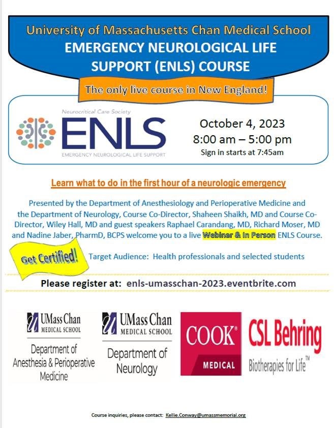 The ENLS course is designed to help healthcare professionals improve patient care and outcomes during the critical first hours of a patient’s neurological emergency. We hope you will join us!