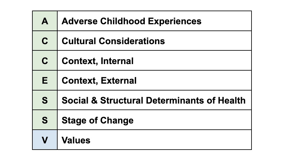 Hands down, my absolute favorite aspect of this paper comes from the minds of Dr. Bridget Beachy and Dr. David Bauman and their creation of the mnemonic ACCESS-V (see the full article for a detailed description of ACCESS-V). Who doesn’t love a good mnemonic? Especially one that encapsulates so many meaningful aspects of understanding the factors and adversities that impact our patients' health.