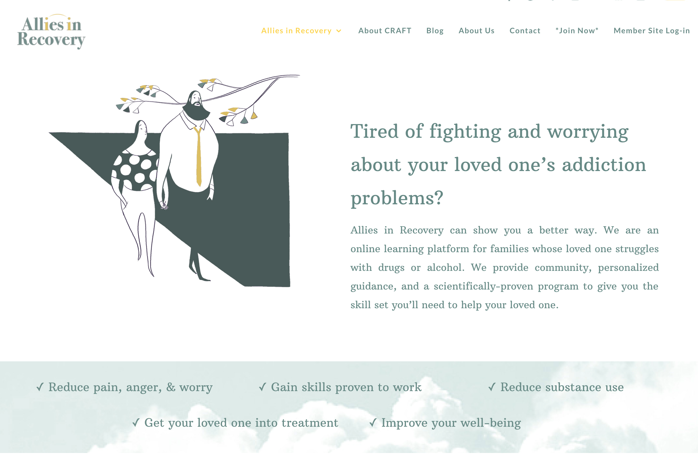 This page connects you to the support tool Allies in Recovery. Allies in Recovery is a web-based program that focuses on educating family members and loved ones affected by substance use disorders. It provides comprehensive and useful trainings on a variety of topics using the principles of Community Reinforcement and Family Training (CRAFT). Allies in Recovery offers education, tools, and a support network to help family members and loved ones.