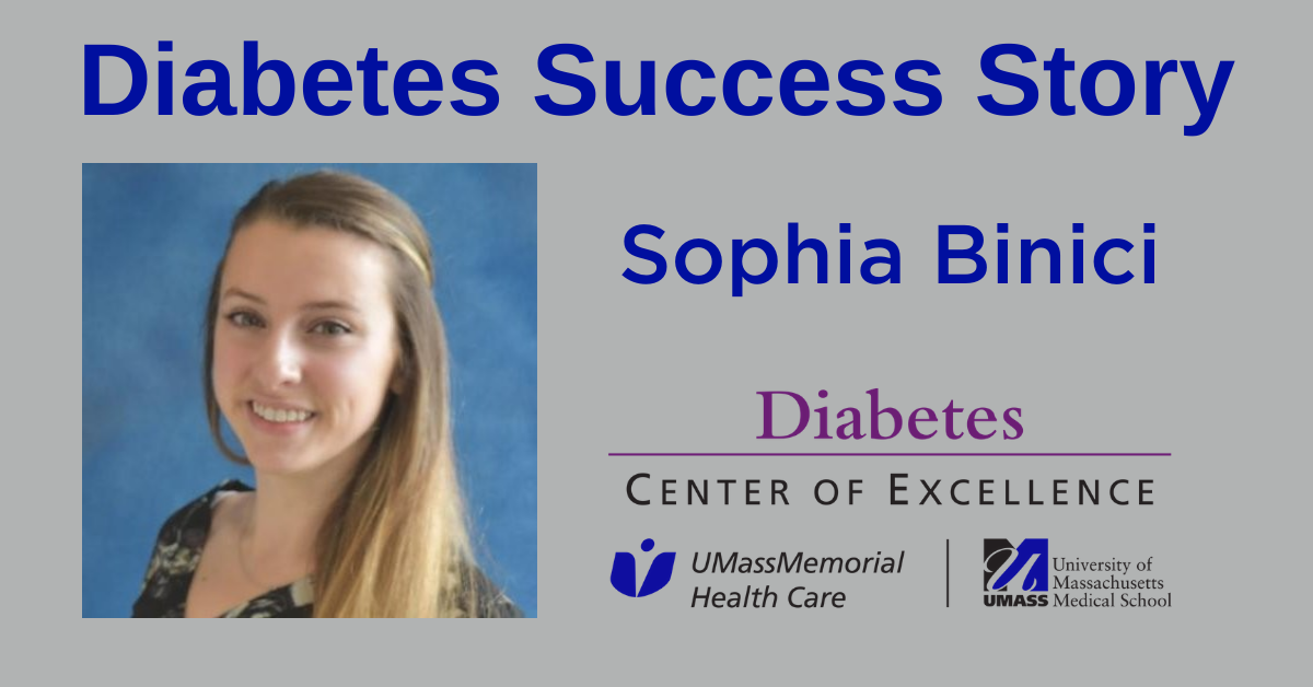 After college, Sophia began working at UMass Chan Medical School as a clinical research assistant. Her goal is to become a pediatric endocrinologist or a diabetes educator, so she can help children navigate the challenges of growing up with diabetes.
