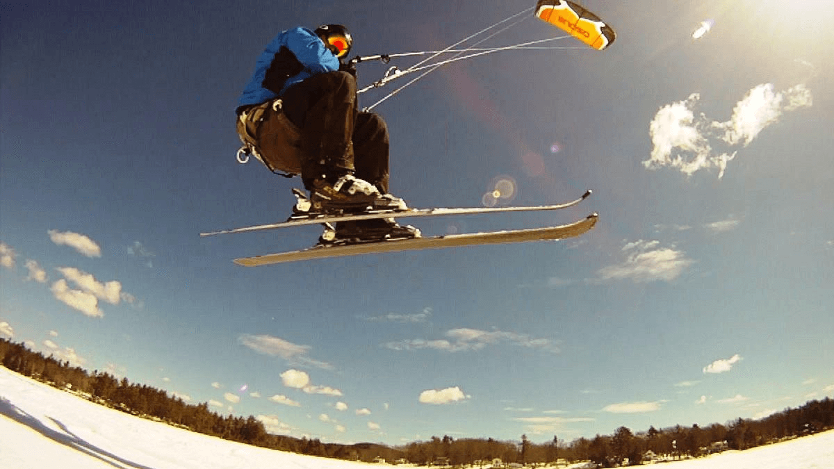 The kites Bob flies to pull him across the water or snow are about 30 feet long by 8 feet wide.  In addition to kite surfing throughout Central Massachusetts and on Cape Cod, other favorite locations include New Hampshire’s Lake Winnipesaukee and the Outer Banks in North Carolina.
