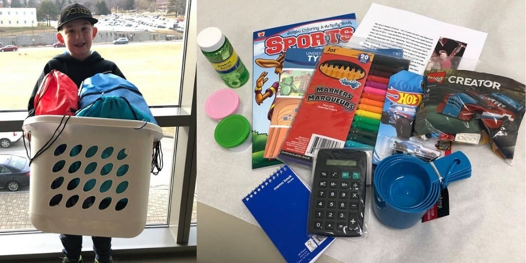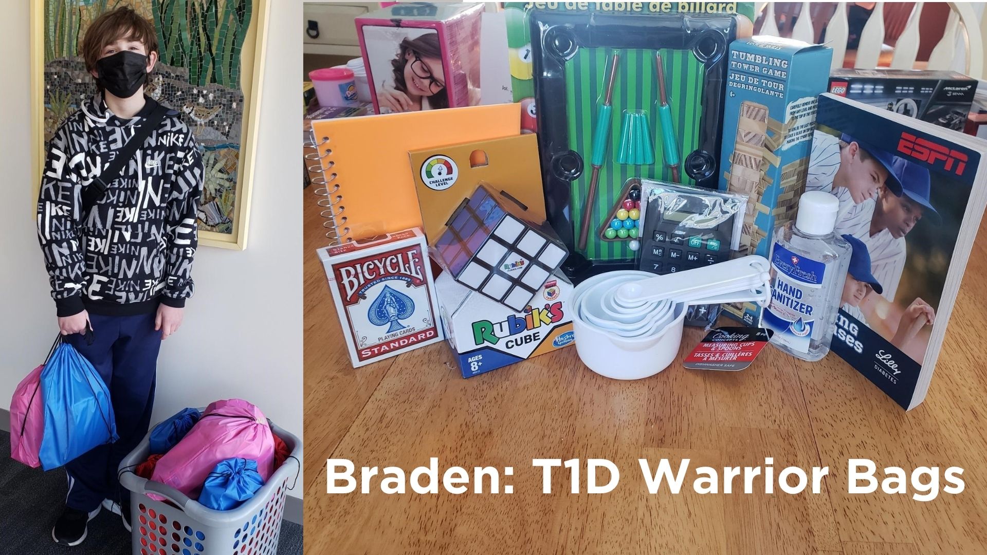 Braden remembers being bored and having nothing to do besides watch TV when he was in the hospital. A little over a month after returning home, he received the JDRF Bag of Hope (now Breakthrough T1D) with information & supplies, and Rufus, the Bear with Diabetes®. “I wish I had that stuff when I was in the hospital,” he said. “So I decided to put these bags together for other kids to enjoy while they're still there.”