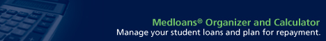 The newest addition to this program is the Medloans® Organizer and Medloans® Calculator which allows you to enter, track, store and run repayment scenarios for your loans. To access the Medloans® Organizer and Calculator, please visit AAMC's FIRST site.