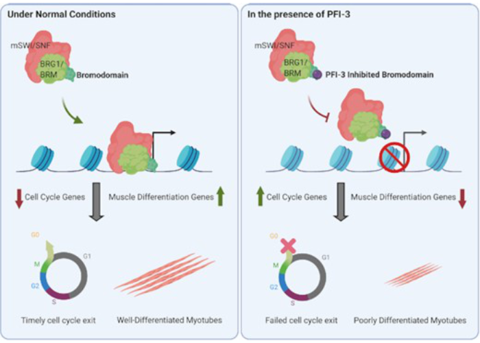 The Bromodomains of the mammalian SWI/SNF (mSWI/SNF) ATPases Brahma (BRM) and Brahma Related Gene 1 (BRG1) promote chromatin interaction and are critical for skeletal muscle differentiation.