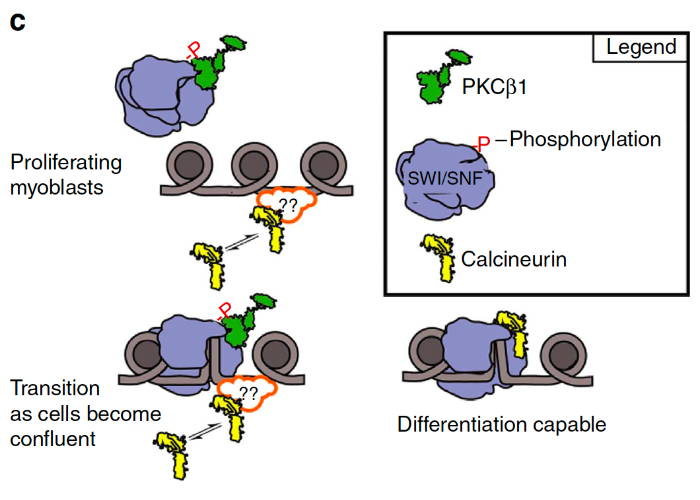 Opposing calcium-dependent signalling pathways control skeletal muscle differentiation by regulating a chromatin remodelling enzyme.