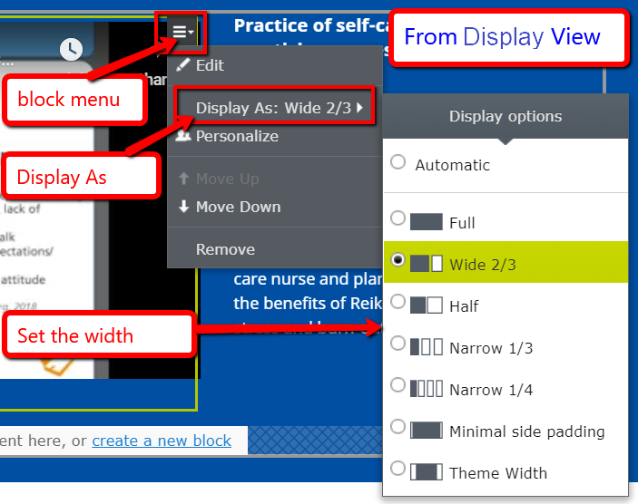 You can adjust the column widths of your blocks in layout (preview) view or properties view. The default setting, if unset, will be Automatic which is the same as Full.