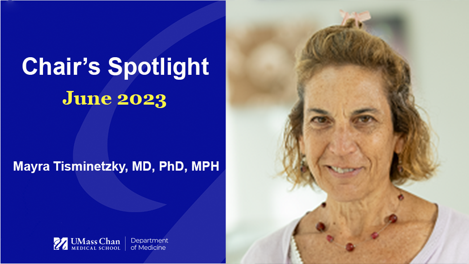 In this month’s Chair’s Spotlight, we highlight the work of Mayra Tisminetzky, MD, PhD, MPH, an associate professor of medicine in the Divisions of Health Systems Science and Geriatrics. She also holds a secondary appointment in population and quantitative health sciences.