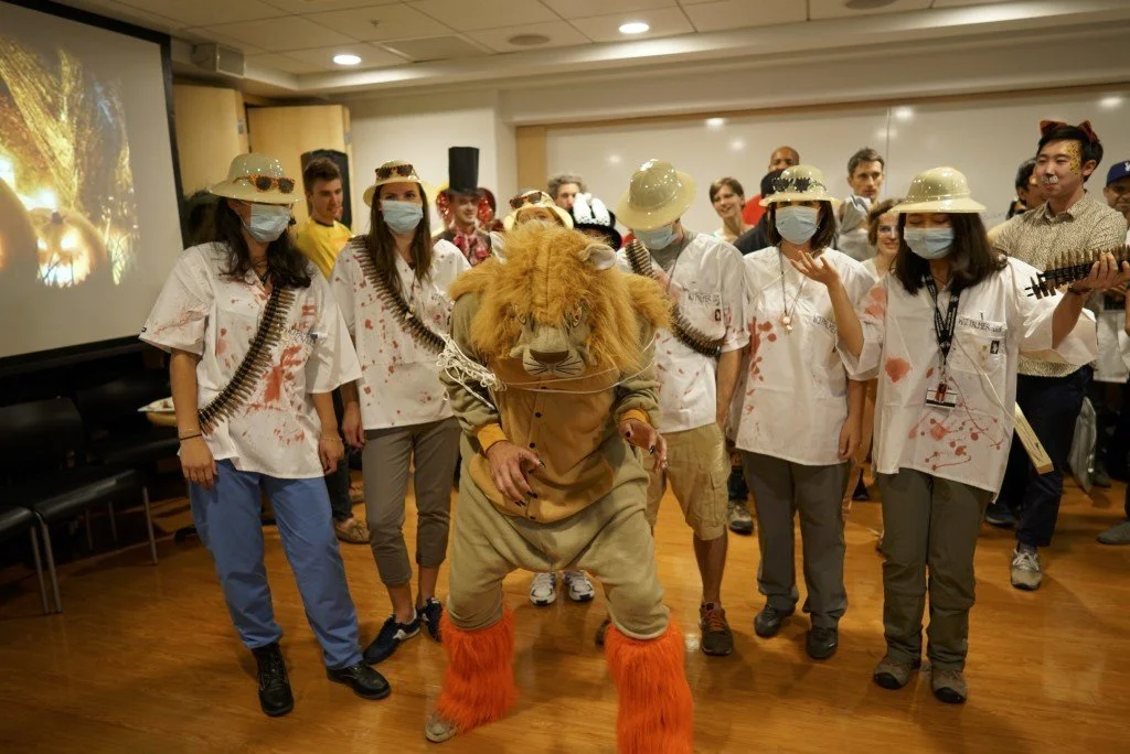 At one of the Halloween contests I was dressed in a full lion outfit. After winning, the lab and I decided to go to a local Irish pub to celebrate. We played pool on their table but as the night went on, the locals started pouring in and wanted ‘their’ table back, however their rules were that they had to win it. Oddly, being dressed as lion helped my pool game and Heather, a former postdoc and I, somehow managed to keep the table all evening while maintaining our costumes, much to the confusion of the regulars.
