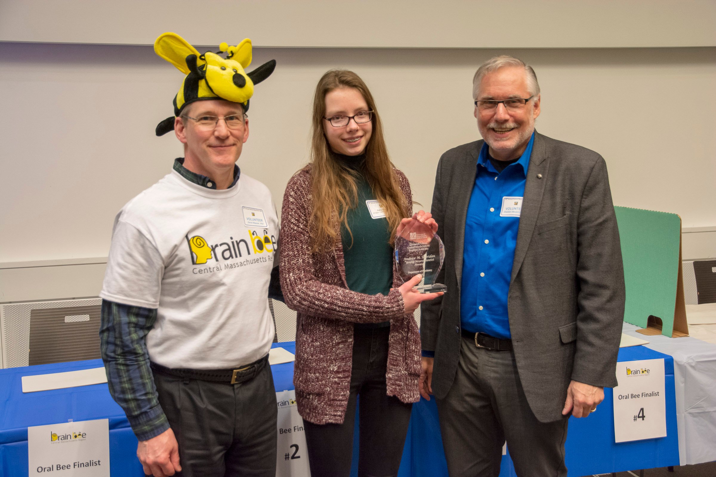 Congratulations to Petra Dujmic from Arlington Catholic High School. Petra was the winner of the 13th Annual Central Massachusetts Regional Brain Bee competition and the Andrew M. Sheridan Young Neuroscientist Award. Asked how she felt to have won the Brain Bee, Petra had this to say. “I just wanted to thank Dr. Benjamin, Mr. and Mrs. Sheridan, and all 39 volunteers for continuously extending this exciting opportunity to high school students and enabling the Brain Bee to be one of the most educational, memorable, and pleasurable events in our student careers! Thanks to the Brain Bee, I have finally decided upon a future career in neuroscience, and am super excited to continue learning about the brain for the National Bee in proud representation of Massachusetts!” Petra represented UMass at the National Brain Bee competition held on April 12-14th at Penn State College of Medicine in Hershey, Pennsylvania. Congratulations Petra on a 9th place finish!