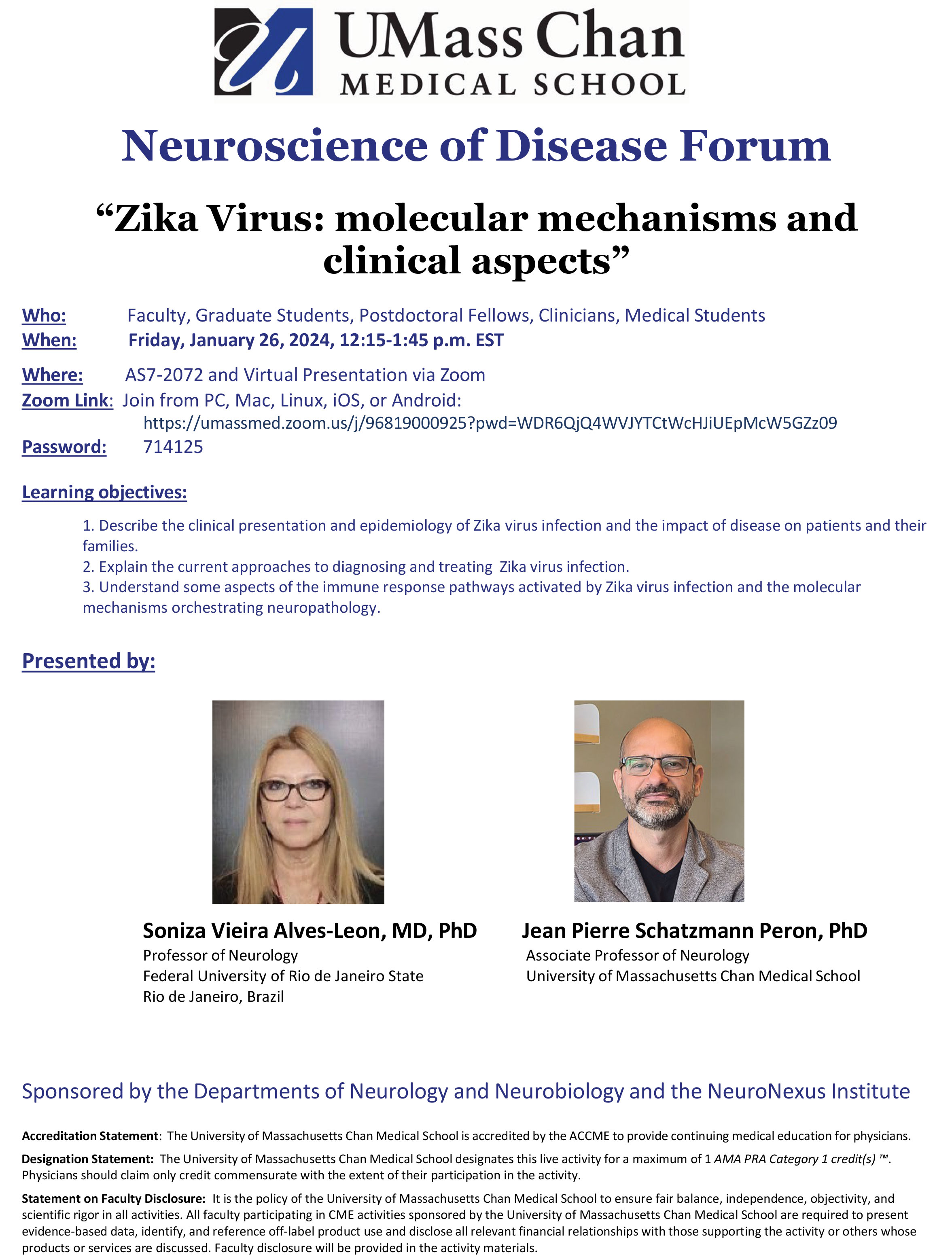 co-presenter for seminar discussion regarding: Zika Virus: Molecular Mechanisms and Clinical Aspects