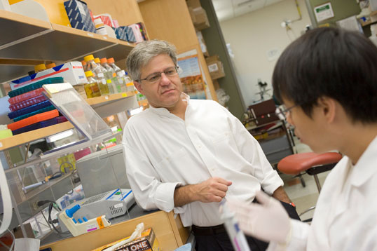 Phillip Zamore, PhD, observes a student in his lab. Dr. Zamore is co-principal investigator of a new grant from the National Institutes of Health that will integrate formal career planning into students’ training.