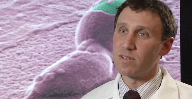 Randy Pellish, MD, co-director of the UMass Center for Microbiome Research, is utilizing a relatively simple solution for the complex problem that is recurrent clostridium difficile. C. diff infects half a million people a year, killing nearly 30,000 within a month of diagnosis. A novel therapy that Dr. Pellish is exploring with his patients who have recurrent C. diff is proving to be more than 90 percent effective.