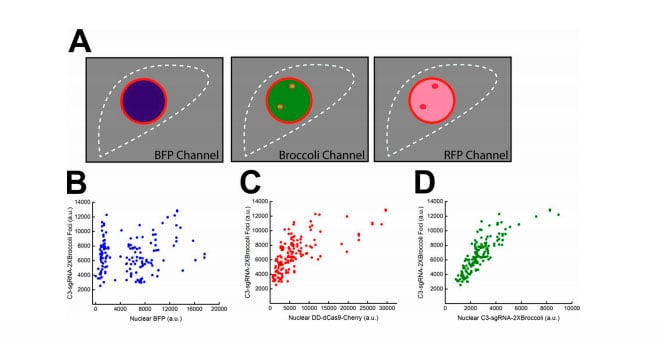 What they found is that the guide RNA, when not bound to Cas9, is extremely short-lived. When the Cas9 and guide RNA do assemble, the complex is much more stable, with about half showing a lifetime in the cell nucleus of approximately 15 minutes and the remainder being considerably more stable.