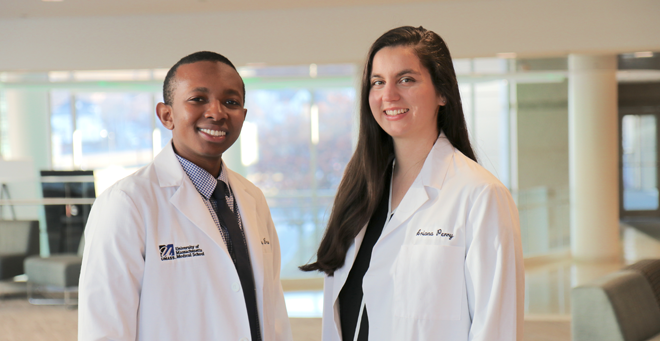 First-year School of Medicine students Rodney Bruno and Ariana Perry are student leaders for the new Urban Health Scholars pathway at UMass Medical School. |