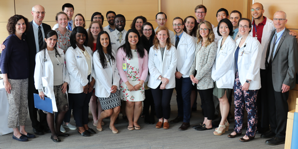 The Gold Humanism Honor Society recognizes students, residents and faculty who practice “patient-centered care by modeling the qualities of integrity, excellence, compassion, altruism, respect and empathy.” It is a signature program of the Arnold P. Gold Foundation, an international nonprofit organization committed to fostering and maintaining a culture of compassion, caring and respect in health care. The UMMS chapter was established in 2014.