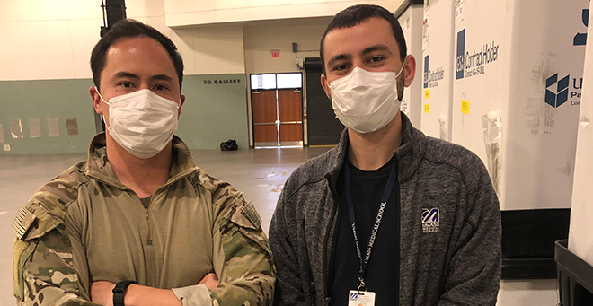 A School of Medicine student and a recent graduate are helping the region prepare for a potential surge of COVID-19 patients by readying the city’s DCU Center to function as a field hospital.