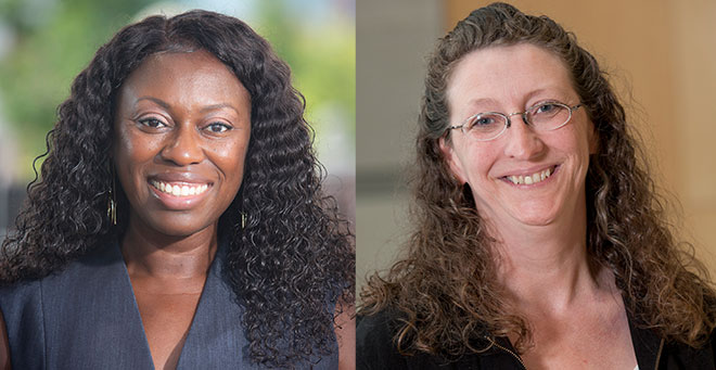 Two UMass Chan Medical School faculty members received Katharine F. Erskine Awards from the YWCA Central Massachusetts. Jennifer Bradford, MD, MPH, assistant professor of family medicine & community health, received the health, science and technology award and Heather-Lyn Haley, PhD, assistant professor of family medicine & community health, received the education award at the annual Tribute to Women held at Mechanics Hall in Worcester on Sept. 14.