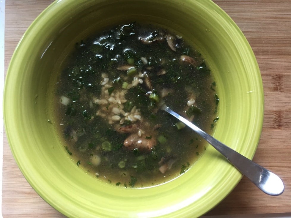 3. Add 2-3 tablespoons broth to a small bowl. Let cool for a few minutes. Stir in miso. Add miso/broth mixture to soup. Stir and serve.