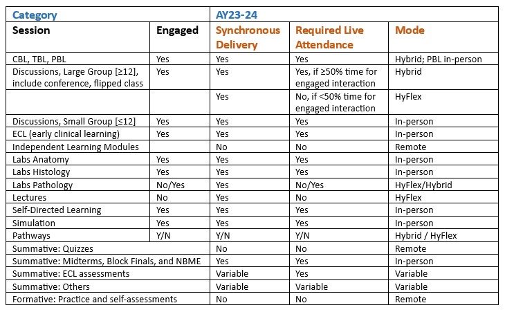 Modes of Curriculum Delivery for Discovery AY23-24
