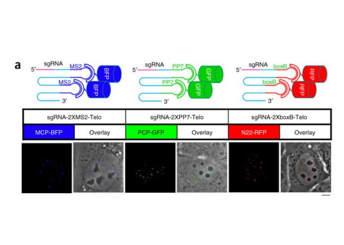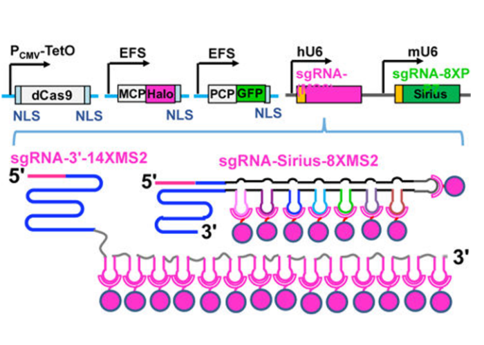 In this method the guide RNAs were modified so as to bind a larger number of fluorescent proteins than before, enhancing the detection sensitivity of labeled genomic loci.