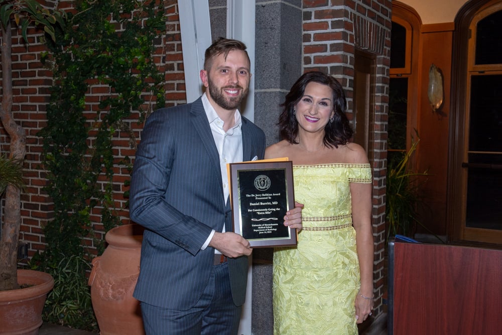 Several other awards were presented during the evening. The Jerry Balikian "Extra Mile" Award was presented to Daniel Burritt. The graduating residents honored Young Kim, MD with the Teacher of the Year Award. Madison (Ballard) McKenney received the 2018 RSNA Roentgen Resident/Fellow Research Award. Dr. DeBenedectis presented gifts, thanks and praise for the graduating Chief Residents Daniel Burritt and Anna Kuhn. She also gave special thanks and gratitude to the faculty who served as Residency Mentors; Alan Goldstein, Ryan Tai, Chip Watts, Helen Kim and Karen Buch.
