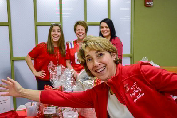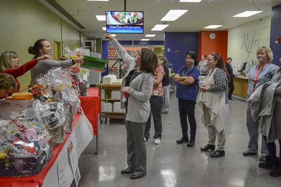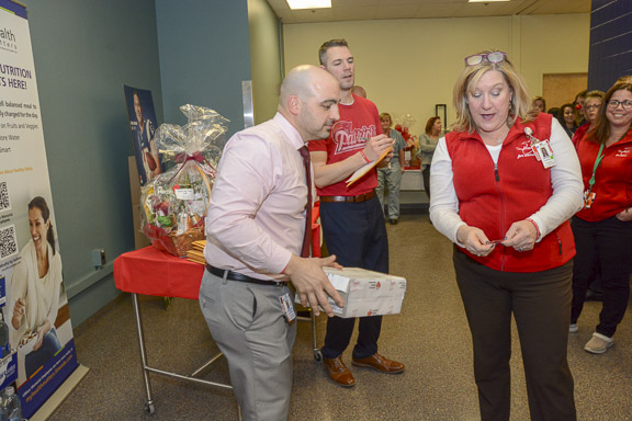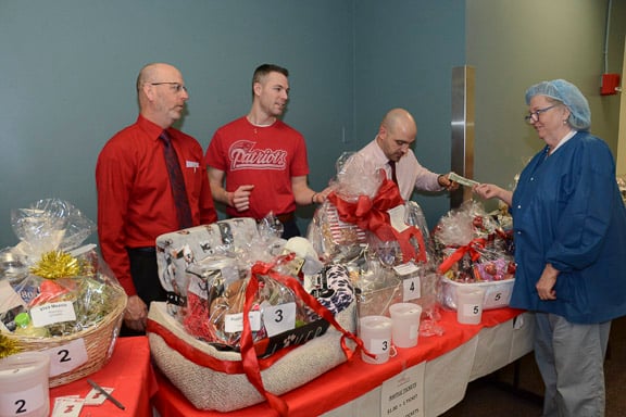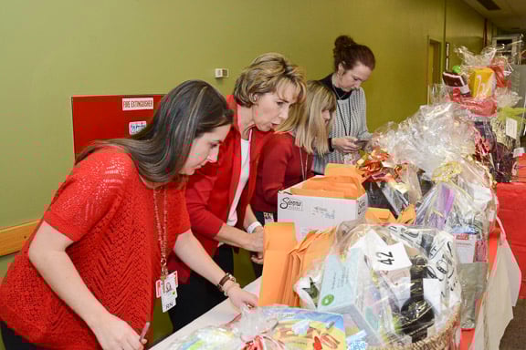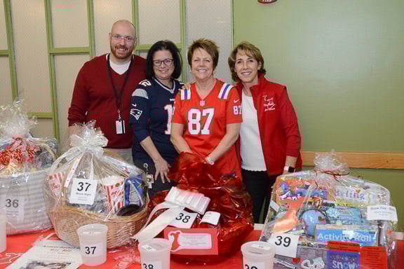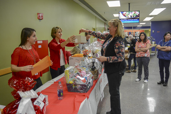 The Go Red team raised more than $10,000 through their annual raffle basket fundraiser for the American Heart Association. The team was led by Kathy Green, Senior Director of Radiology Services, assisted by Vilma Merkelis; Marcia Amaral and Michele Foley at Memorial, Susan Gustafson atFront Street, Linda Anderson and Sharon Krupski at Hahnemann. Many thanks go to all those who assisted each day moving baskets back and forth and helping with ticket sales; Tim Clark, Kevin Reynolds, Steve Beaudoin, Steve Giangrande, Debbie Pellegrino, Diane Kuindersma, Kaitlin McFadden, Jason Wilder, and Phil Bottone. More than fifty (50) baskets were donated by many UMass Memorial departments. Congratulations to the more than 50 winners and thank you to the Go Red team and those who supported educating our employees about women and heart disease. Over the last 4 years, the team raised a total of $38,901!