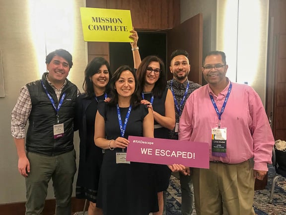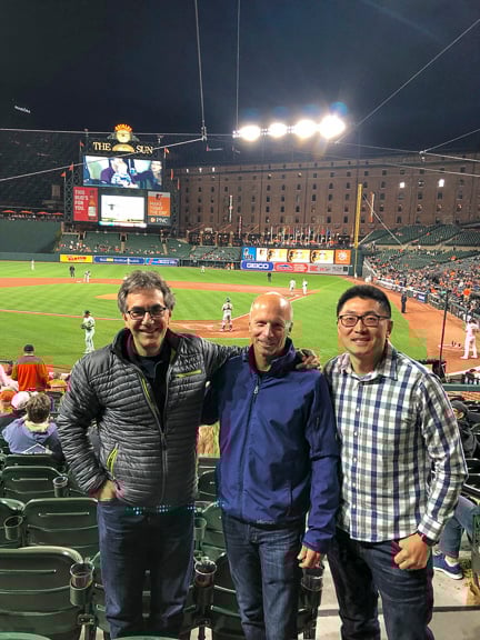 Other activities at the meeting included a Radiology Escape Room. Escapees pictured were Alex Newbury (UMass Chan student, UMass Radiology Resident - start July 2020), Joelle Wazen and Alex Pavidapha plus Drs. Nupur Verma and Tan-Lucien Mohammed from U of Florida. Max Rosen, Hao Lo and Dr. Bader (Radiology Department Chair St Vincent Hospital) at an Orioles game at Camden Yards.