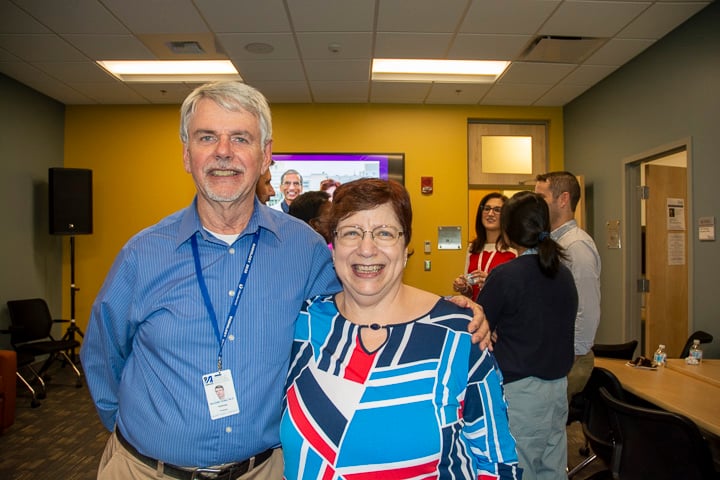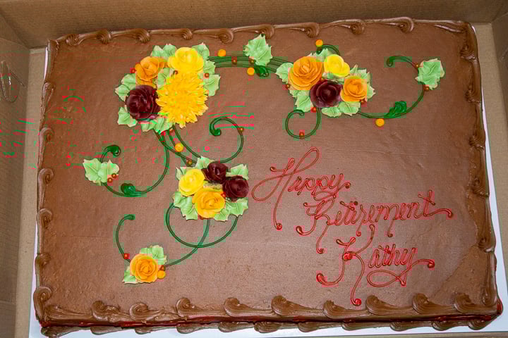 After 15,589 days, 89,080 hours or 42 years 8 months Kathy Delongchamp retired from her position as Radiology Fellowship Coordinator. Nearly 200 people stopped by to wish Kathy a happy retirement at a reception with cake (chocolate - Kathy's favorite) hosted by the department on September 27. Kathy's sister and brother in-law flew in from Kansas for the occasion. A dinner was held earlier in the week with her closest department colleagues and Fellowship Directors.