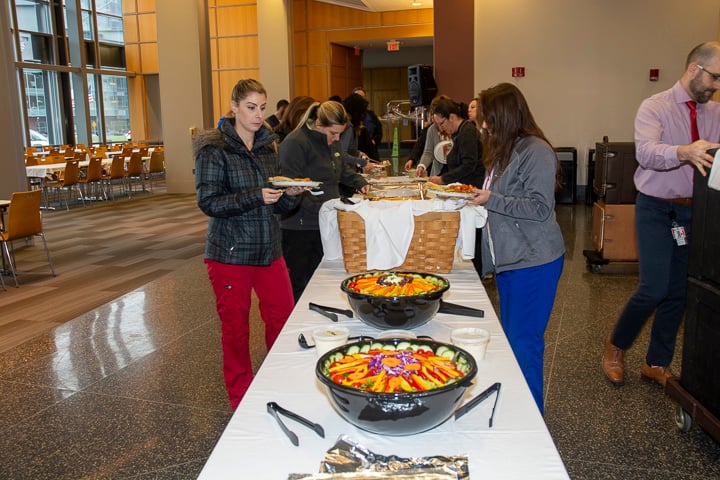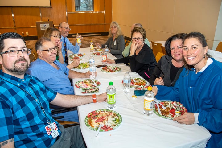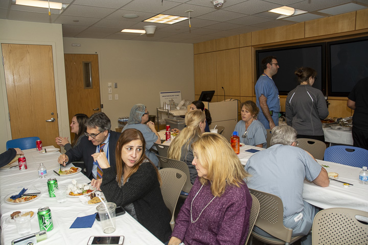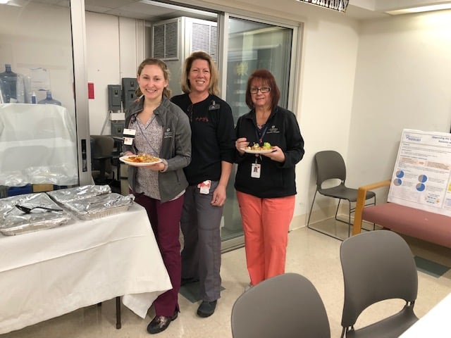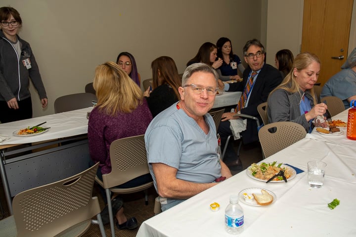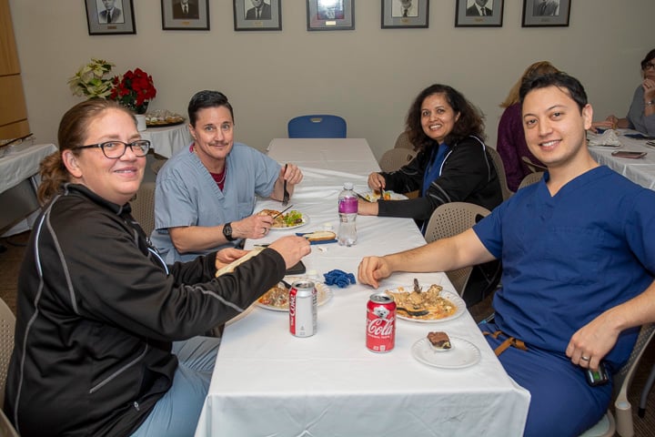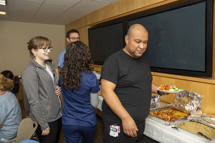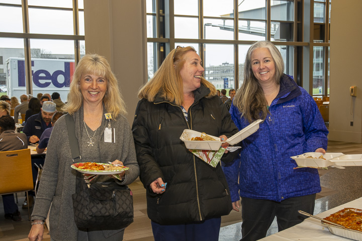 The Radiology Department hosted Holiday Parties at the Memorial, Hahnemann and University Campuses, December 10 and 12. The hosts and organizing team included Kathy Green, Lauren George, Marcia Amaral, Steve Beaudoin, Patrick St. Jean, Kevin Reynolds, Linda Anderson and Max Rosen. Staff enjoyed the Italian luncheon and a chance to relax and visit with colleagues.