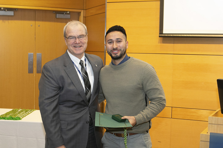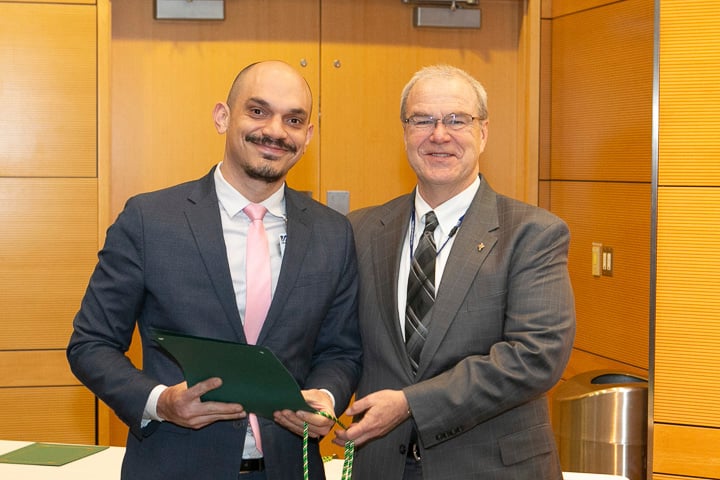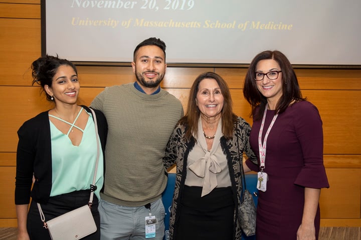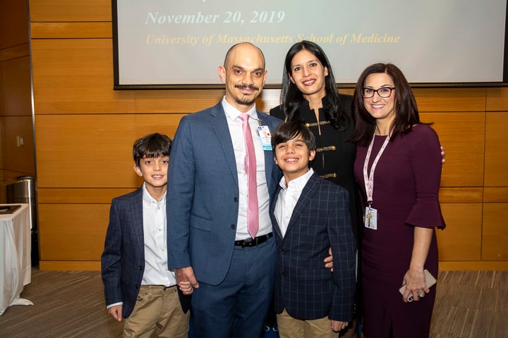 Pictured below is Dean Flotte presenting the awards and Drs. Kutcher-Diaz and Pavidapha with their families and Dr. DeBenedectis, the Director of the Radiology Residency Program.