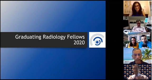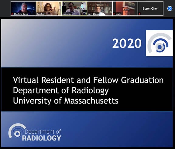 The UMass Chan Medical School Radiology Residency & Fellowship Programs. Class of 2020 Graduation Ceremony took place on June 10, 2020. Due to the safety restrictions for the Covid-19 pandemic the graduation took place via Zoom. Carolynn DeBenedectis, MD, Radiology Vice Chair of Education, hosted the event and Department Chair, Max Rosen, MD, MPH, offered opening and closing remarks. Dr. DeBenedectis presented the graduating Residents and the Fellows were honored by program directors or faculty within their divisions. Fellowship Director, Gopal Vijayaraghavan, MD, introduced the Fellows and offered some special insights about these times. Congratulations Radiology Residents, Fellows and Faculty!