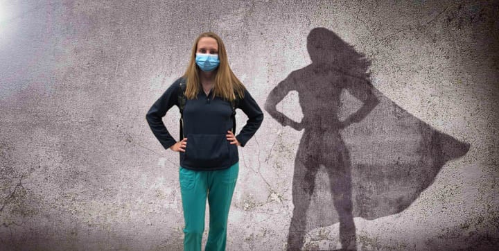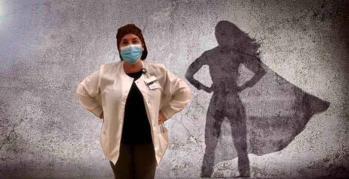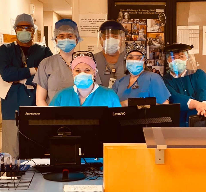 Radiology Ambulatory Services Rep, Linda Lopez wanted to do something that recognized Radiology staff who are on the frontlines every day. Inspired by her colleagues, Linda created a Superheroes Wear Scrubs wall that hangs in the first floor of the Radiology Department on the University Campus. Linda posed and took photos of masked frontline staff during the Covid-19 pandemic. Then collected images of many of the staff she was unable to photograph. Linda edited the images in Photoshop, then printed and posted the wall of Superheroes! What a great tribute Linda, Wow! 💥💝
