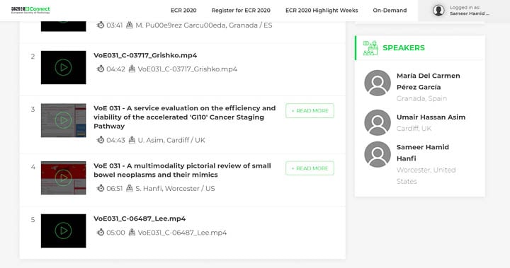 The European Congress of Radiology 2020 (ECR 2020) was an online-only event this year. UMass Radiology Resident Sameer Hanfi, MBBS, recent grad Evan Ruppell, DO, former visiting fellow Javzandolgor Nyamsambuu, MD and body faculty presented at the European Congress of Radiology. They were scheduled to attend and present at the meeting in Vienna, Austria July 15 – July 19, 2020. Dr Hanfi’s abstract was accepted for both oral and poster presentation. The congress is the annual meeting of the European Society of Radiology. This year the meeting was held virtually due to COVID-19 pandemic.