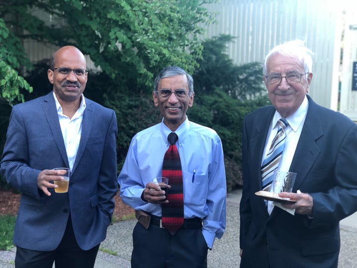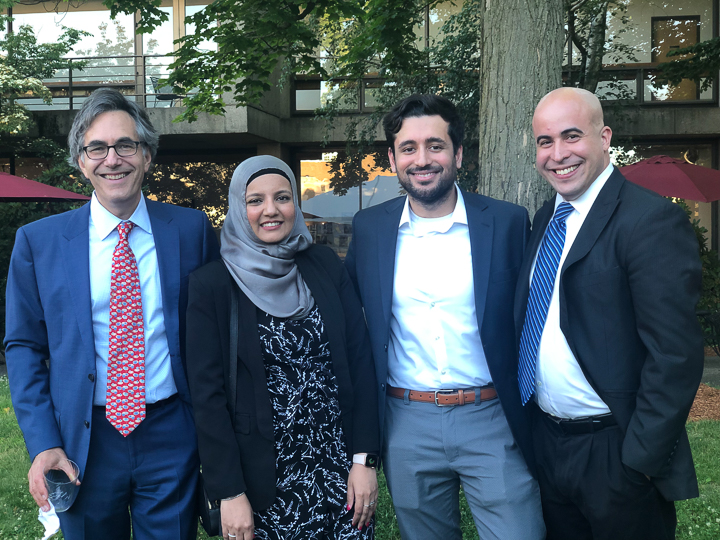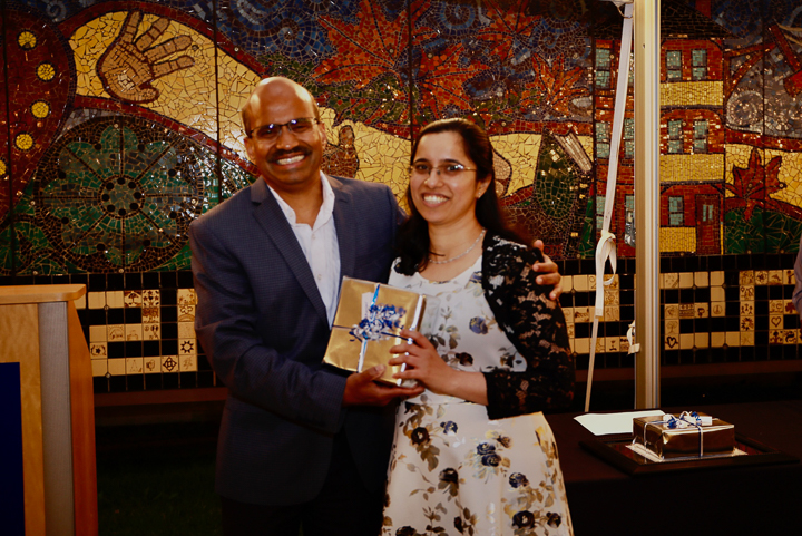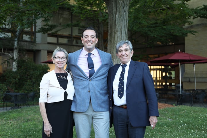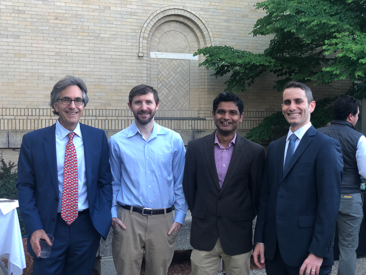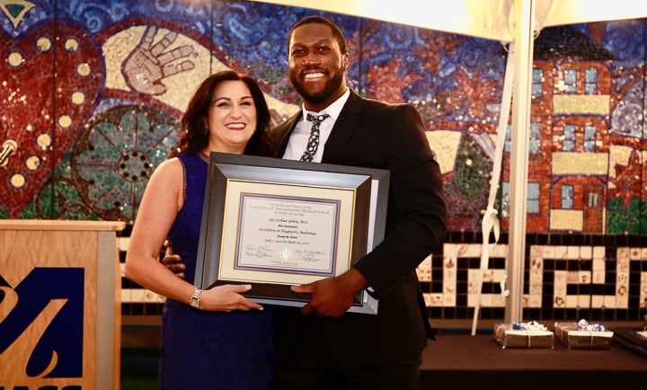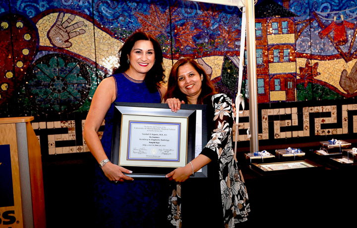 The evening included a social hour special awards and diplomas for the graduates. A new honor, the Michael A King, PhD Award for excellence in research was presented for the first time, to Robert King, PhD. Some of the 2020 graduating class (Venkatesh Murugan, Alex Pavidapha, David Radcliffe, and Evan Ruppell), who did not get a true graduation celebration last year (zoom) were able to attend for a belated celebration. Dr. DeBenedectis thanked the graduating chief residents, Dr. Derek Chicarilli and Dr. Roberto Kutcher. She also announced the new chief residents – Drs. Tina Shiang, Sameer Hanfi, and IR chief Dr. Yara Younan.