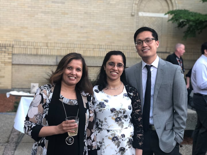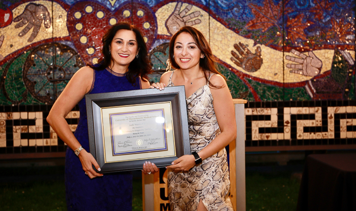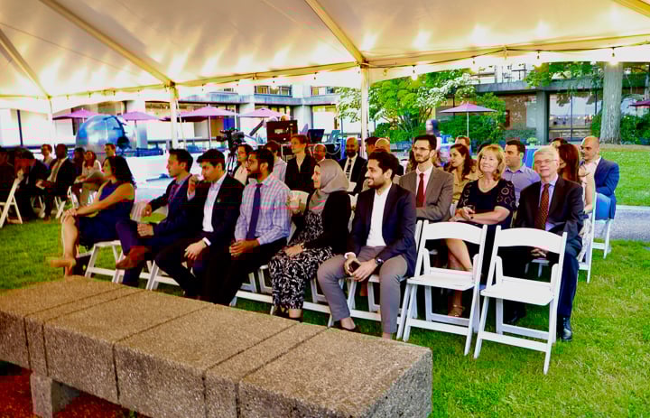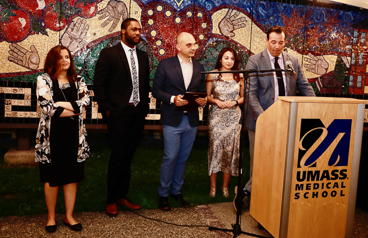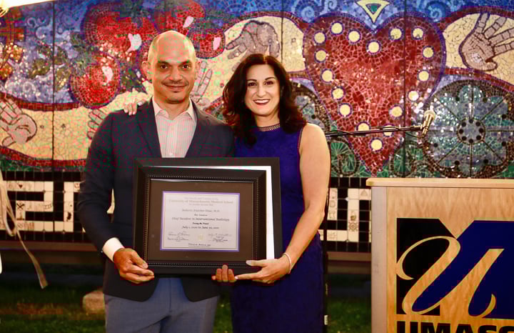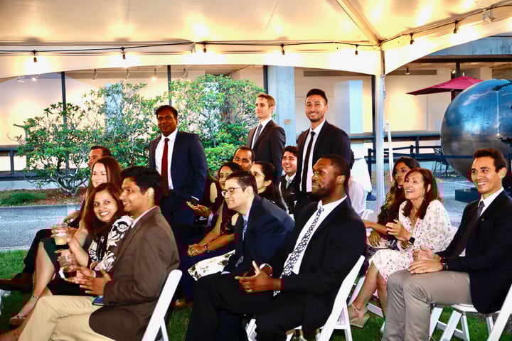 On June 24 the Department of Radiology hosted the annual graduation ceremony outside in the courtyard of the Worcester Art Museum. Unlike past years, the guest list was limited to fellows, residents graduates and their families, the program directors and administrators. Carolynn DeBenedectis, director of the diagnostic residency program, opened by saying "Normally I start this speech off by saying 'we have had another great year in the radiology residency here at UMass, due to our wonderful residents.' However, this year I want to start by saying we had an extremely challenging year and a half and we made it through because of our wonderful, resilient residents ... I cannot express how proud I am of these 19 residents for overcoming so many challenges this year and do it with a positive attitude all while providing excellent care to our patients."
