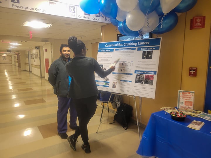 Communities Crushing Cancer is an initiative aimed at raising awareness about the importance of cancer screening. On November 16, 2023, radiology residents at UMass Chan Medical School engaged with patients, families, and members of the local community to educate and promote screening examinations and provide them with informational brochures about the process. In collaboration with the Resident and Fellow Section of the Massachusetts Radiological Society, residents from UMass and other programs across the state made this a far-reaching and impactful service to our surrounding communities.”