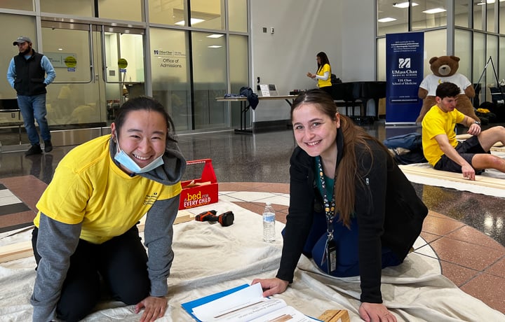 A team from Radiology participated in a Build a Bed project along with other teams from UMass Chan. The event was part of the Doctor's Day celebration week at UMass Chan. The "Supporting Sprouts: Build a Bed Volunteer Event" was held at UMass Chan Medical School on Tuesday, 3/26/2024.