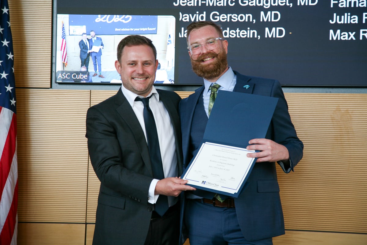 Graduation certificates and awards were presented during the Radiology Graduation along with thanks to the Medical Student Educators, faculty and staff. Graduation program (pdf).