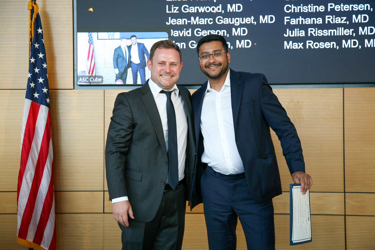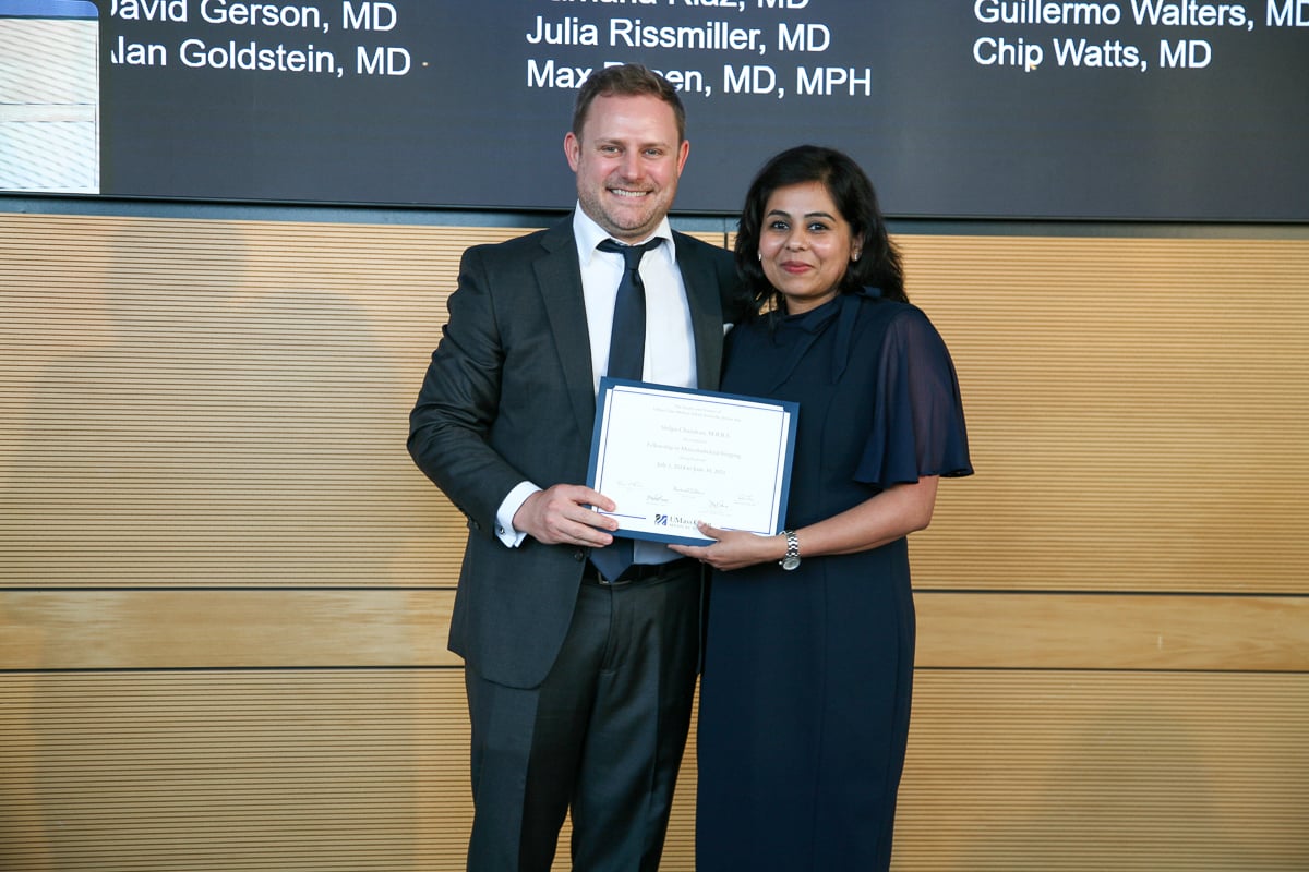 Radiology Graduating ResidentsThe 2025 Radiology Graduation took place on June 16 on campus in "The Cube." Due to spending restrictions the ceremony was preceded by a cocktail hour and Hors d’Oeuvres generously donated by the department faculty. The graduation celebrations began on June 6 with the 18th Annual Edward Smith Lecture presented by Dr. Mathias Prokop. Before the lecture the "Dr. Ferrucci Radiologist of the Year Award" was presented virtually to Dr. Mona Koragaonkar.
