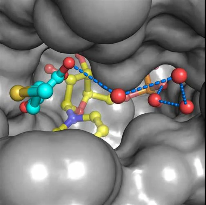 Binding of HIPP (cyan) in the active site of CtBP1 as revealed by the co-crystal structure (Hilbert et al. ACS Chem. Biol. 2015 10, 1118- 1127). This compound was designed based on our previous crystal structures and binds with a dissociation constant of 370nM, the highest affinity CtBP inhibitor discovered to date. The structure shown suggests that adding moieties to HIPP could provide additional favorable interactions for binding.”
