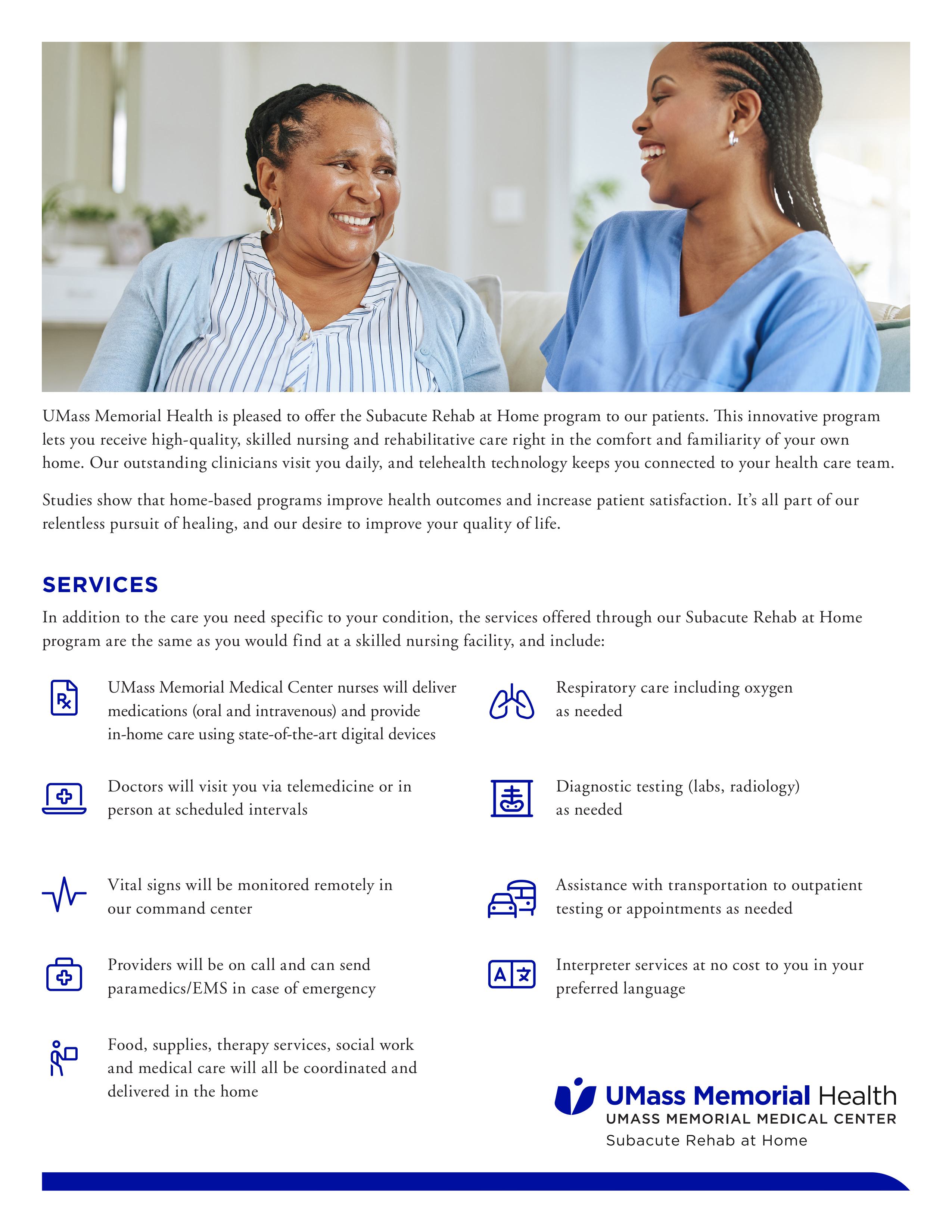 Are you a provider and are looking to refer a patient to us or just have general questions about our study? Reach out to us! Secure chat the group Subacute Rehab At Home!