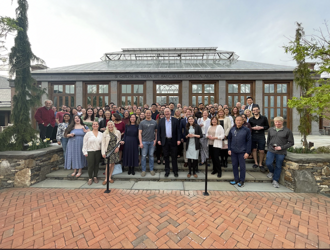 On May 5th, 2022 the program in molecular medicine welcomed the newest three faculty members (Jessica Spinelli, Jin Zhang, and Kuang Shen) into the department with a reception at the Tower Hill Botanic Garden.
