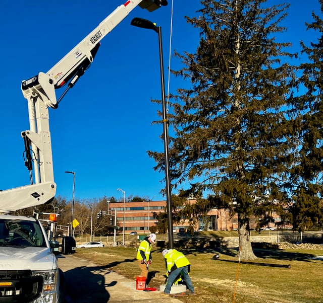 The project arose from a campus lighting study by Cannon Design that recommended steps to improve the safety of employees who utilize the Pine Tree lot at night.