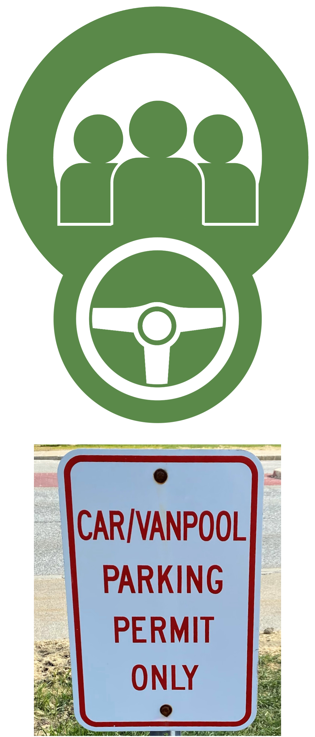 A carpool group will get one hanging tag and one carpool access badge to enter their parking area. Everyone in the group can register a vehicle, so the tag and badge can be moved to the vehicle the group decides to use on a particular day. (With sufficient notice, provisions can be made if a carpooler needs to drive alone, in their own car, to campus on a particular day.)