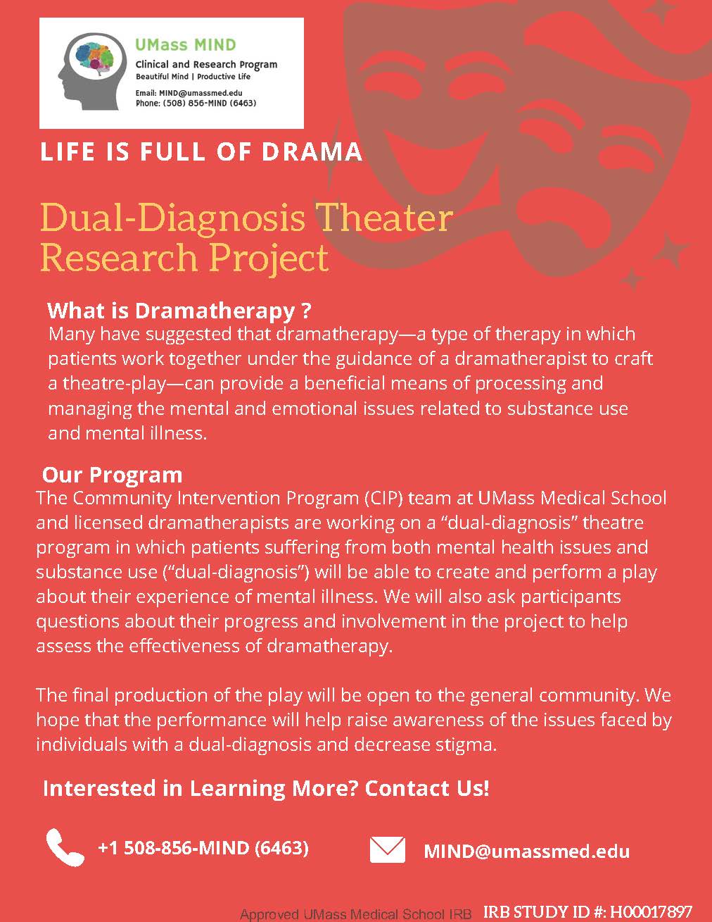 - UMass MIND Introduces Unprecedented Drama Therapy for Mental Illness (7/25/2021)